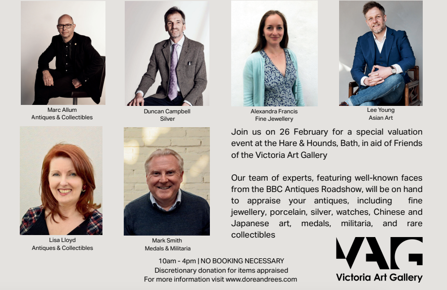 Join Dore & Rees on 26 February for a special valuation event at the Hare & Hounds, Bath, in aid of Friends of the Victoria Art Gallery.
